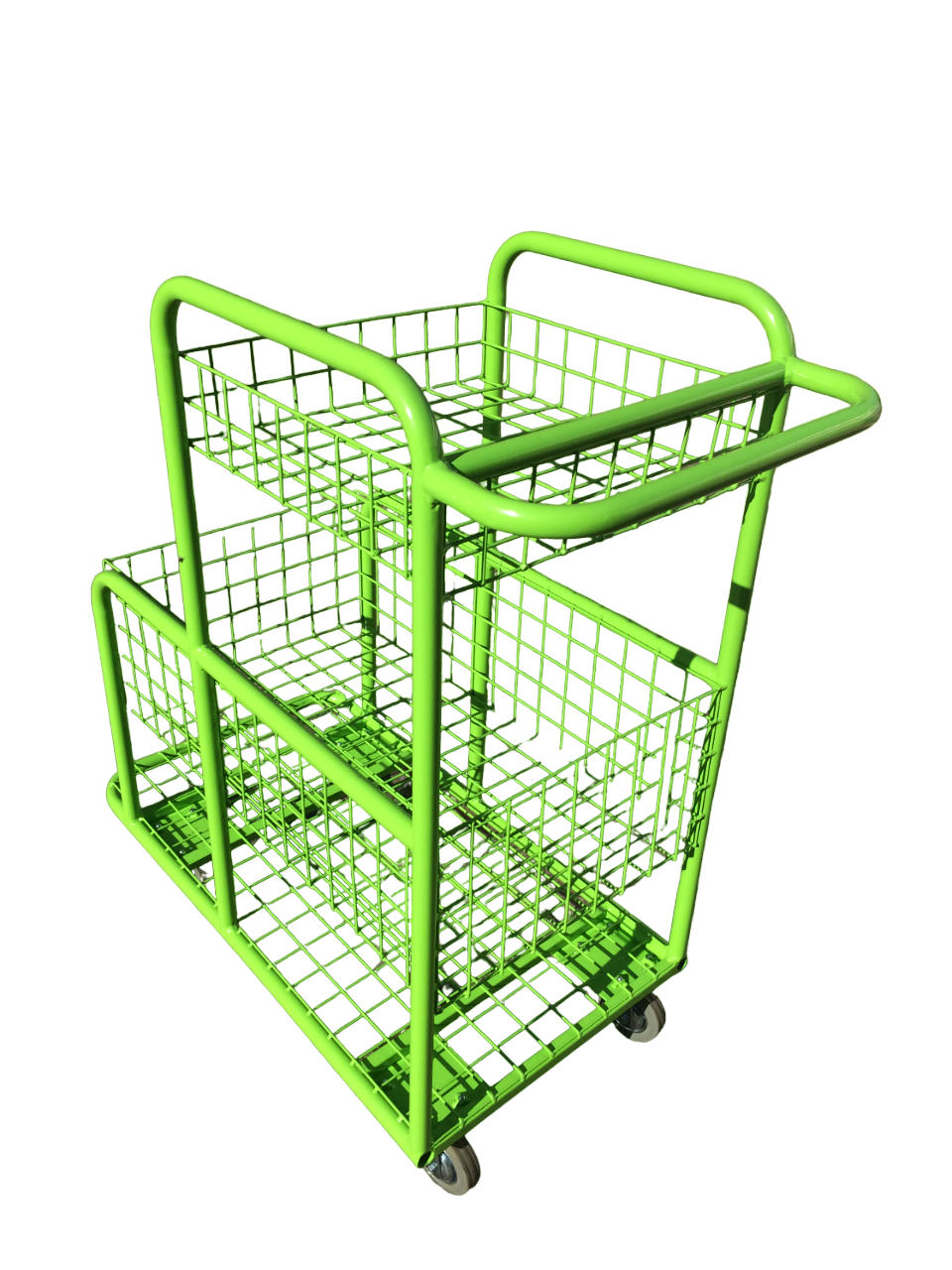 Carro metálico para transporte ordenado y seguro de valijas, cajas o correspondencia en operaciones logísticas.